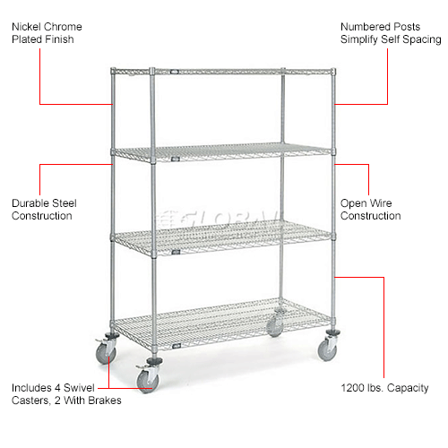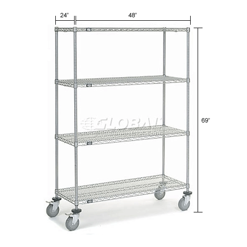Nexel® Chrome Wire Linen Cart with Nylon Cover, 4 Shelves, 48″L x 24″W x 69″H